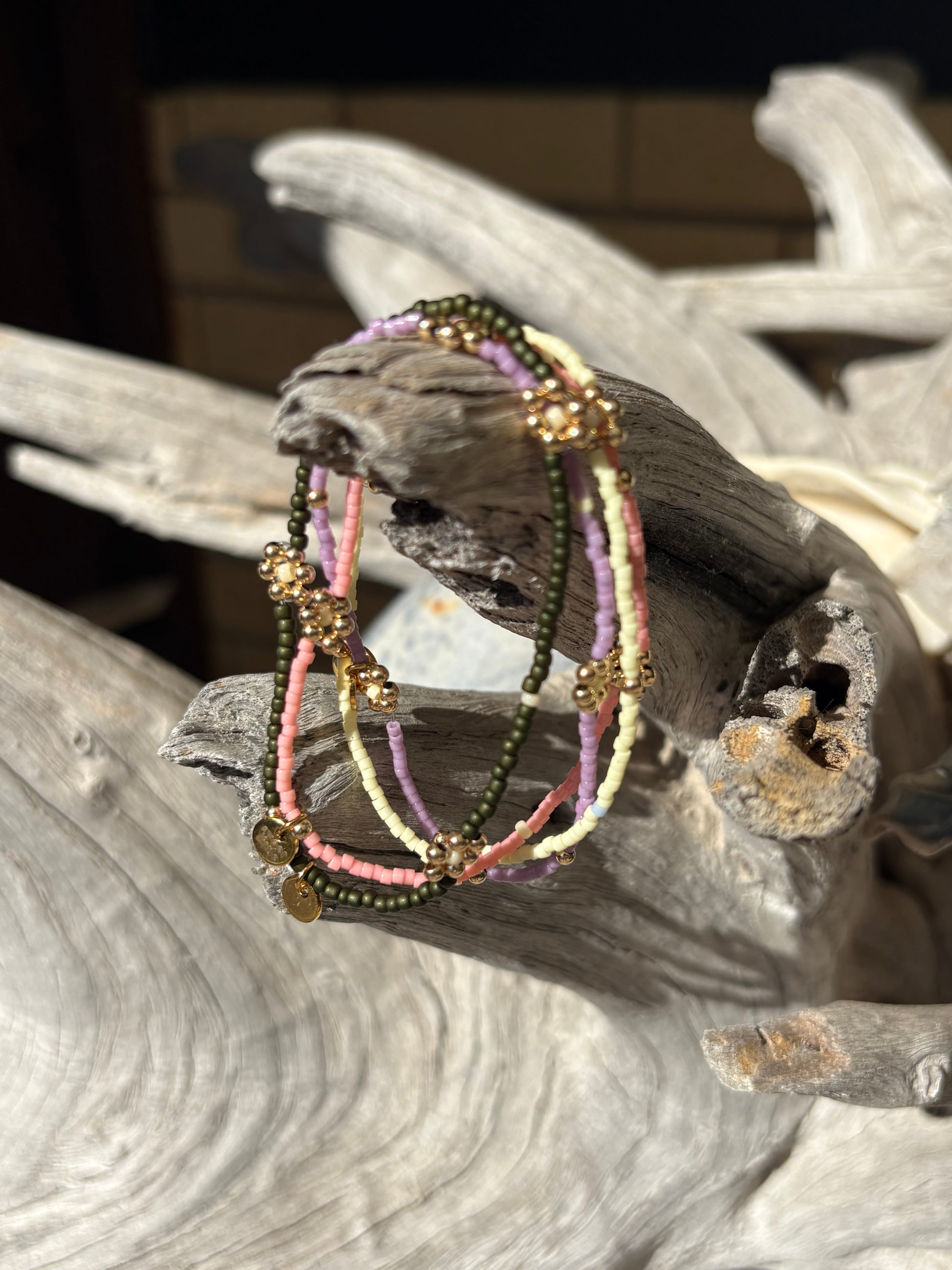 Gold flower fine beaded bracelets